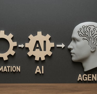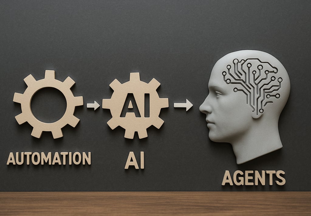 The evolution from automation → AI automation → AI agents mirrors how organizations are scaling efficiency and intelligence in their operations.